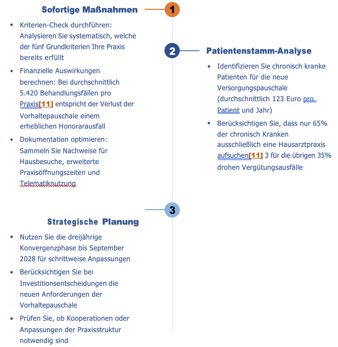 Da die finale Entscheidung über die Vorhaltepauschale am 17. Juni 2025 gefallen ist, sollten sich Hausarztpraxen bereits jetzt gezielt vorbereiten: