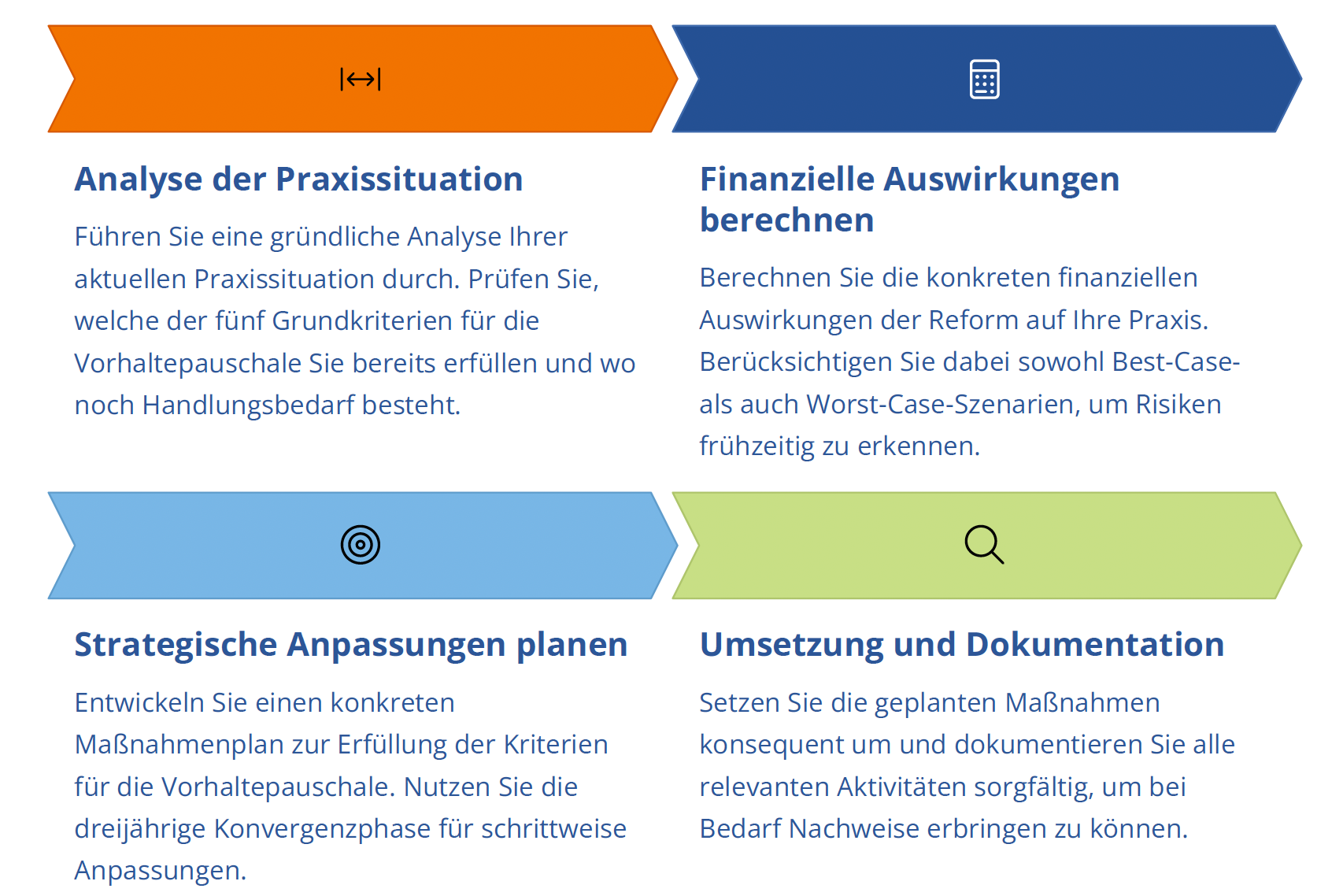 Nutzen Sie die Zeit bis zum Inkrafttreten der Änderungen am 1. Oktober 2025, um Ihre Praxis optimal auf die neuen Rahmenbedingungen vorzubereiten. Die dreijährige Konvergenzphase bietet zusätzlichen Spielraum für eine schrittweise Anpassung und schützt vor extremen Honorarverlusten.
