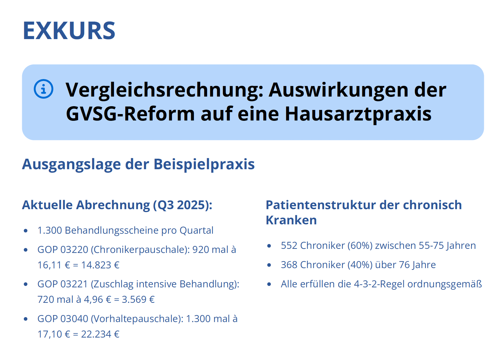 - Versorgungspauschale: Nur für stabile chronische Erkrankungen ohne intensiven Betreuungsaufwand